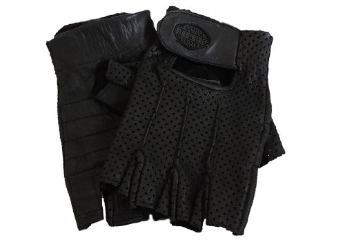 -. Title : XL Fingerless Perforated Black Leather Gloves Size XL