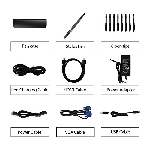 -. Feature : 8192 Levels of Pressure Sensitivity: 4 times increased for pen pressure from 2048 to 8192, providing smooth writing or drawing experience. It offers more accuracy, realistic and better performance in drawing lines / 22.1 inch HD Drawing Monitor with 10 Express keys and 1 Touch Bar on each side of the monitor: Resolution 1920 x 1080. 16:9, 5080 LPI. 10 customizable shortcut keys and 1 touch bar on both side of the monitor. The touch bar can be used to zoom in/out the image / Wide Viewing Angle 178° x 178°. 72% NTSC wide color gamut and 16.7 million color present natral and vivid color. Comes with an adjustable stand. HDMI, DVI, VGA ,USB ports are all in placed on right side of the monitor which will be more convenient to insert / OS Compatibility: Windows 10/8/8.1/7 and Mac 10.11 or above. Drawing Program Support: It works with major art programs including Adobe Photoshop, Illustrator CC, Corel Painter, Paint Tool Sai, GIMP, CLIP Studio,Krita and more. / Newly Designed Rechargeable Stylus PE330: 2 buttons in the pen can be set as your needs. Can be continuously used for 350 hours after 1.5 hours full charging.