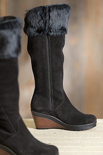 Studio : Overland Sheepskin Co. Publisher : Overland Sheepskin Co. Binding : Apparel Product Description Fashion your daytime or evening look with these tall wedge boots in premium cowhide suede, adorned at the collar in rabbit fur trim. A lambswool insole and the Amitex shaft lining give you lasting comfort in these mighty boots that beg to be worn over slim jeans or with a short skirt. - Italian cowhide suede with rabbit fur trim