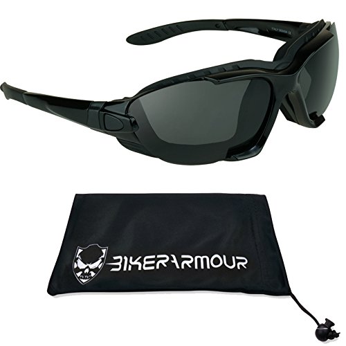 -. Title : Motorcycle Sunglasses Goggles Foam Padded with Interchangeable Adjustable strap and Sunglass Legs and Removable Foam Cushion.