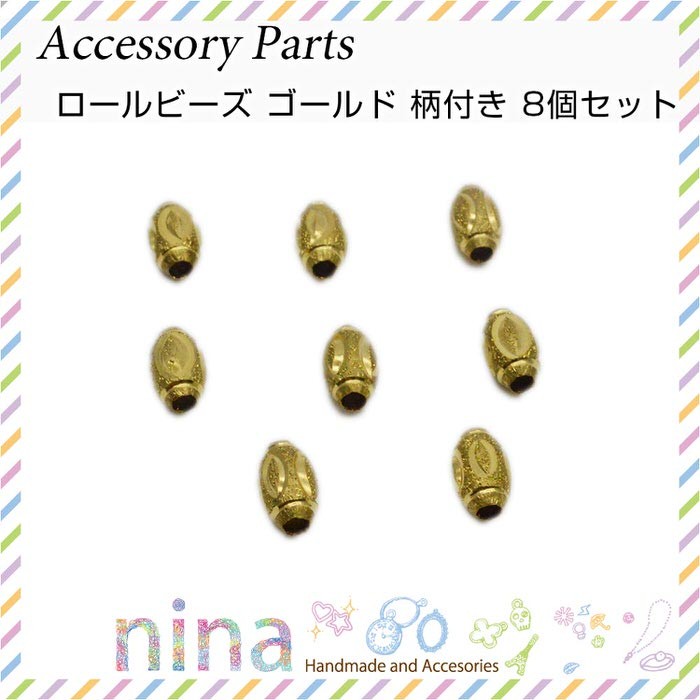 ■商品名:ロールビーズ ゴールド 柄付き 8個セット