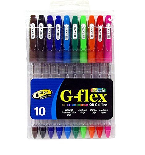 -. Title : BAZIC 10 Color G-Flex Dazzle Oil-Gel Ink Pen with Cushion Grip (17070)