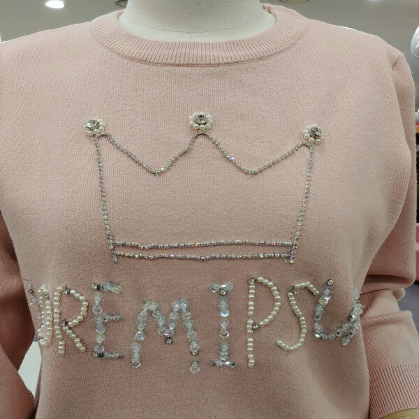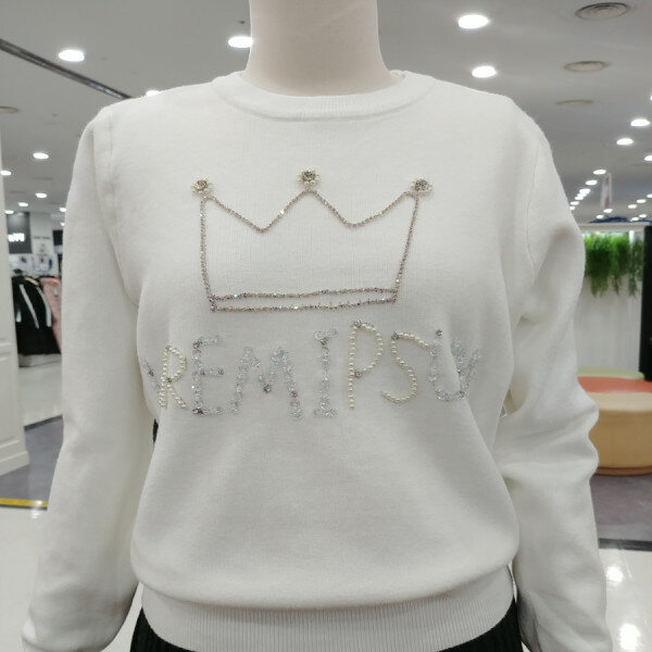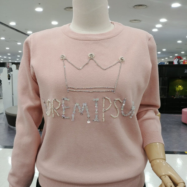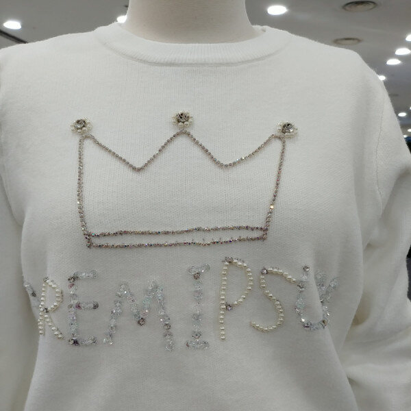 왕관 비즈 보석 디테일이 돋보이는블링블링 러블리한 라운드넥 니트티셔츠예요부드러운 촉감으로 추운 겨울에도따뜻하게 즐기실수 있는페미닌한 느낌으로 다양한 하의와코디하기 좋은 예쁜 티셔츠!!!~~추천해드려요