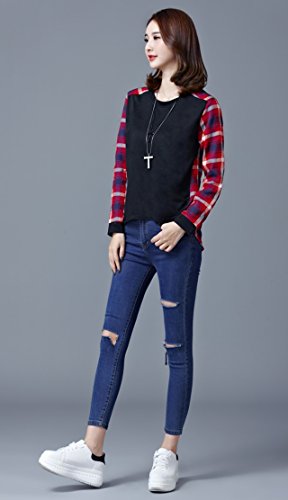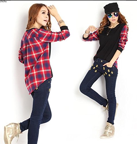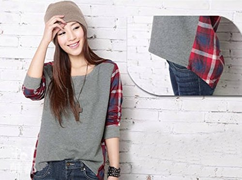 -. Feature : トレンドのチェック柄と無地の切り替えがオシャレなトップス。すっきりした襟元で、デコルテをきれいに演出してくれます。前後アシンメトリーデザインで、ニットやデニムにも合わせやすい着回し力抜群のデザインです。無地部分はメリヤス、チェック部分はブロードです。肌触り・着心地の良い、カットソーです。 / 春・秋、には一枚で、冬にはカーディガン・アウター等と合わせて頂くと幅広いコーデを楽しんで頂く事が出来ます。ワイドなパンツやガウチョ・スカーチョはもちろん、サロペットやスカートに合わせる等、コーデを楽しんで頂けます。 / 【カラー】灰(グレー)・黒(ブラック)【素材】コットン・ポリエステル  / 【サイズ】Mサイズ… 着丈(前) 54cm (後) 65cm 肩幅 38cm バスト 92cm 袖丈 51cm Lサイズ… 着丈(前) 55cm (後) 66cm 肩幅 39cm バスト 96cm 袖丈 52cm XLサイズ…着丈(前) 56cm (後) 67cm 肩幅 40cm バスト 100cm 袖丈 53cm 誤差等生じます場合は、御了承くださいませ。  / フラット・ぺたんこシューズ ローヒールの靴に合わせて頂くとキュートでかわいい雰囲気になり、パンプス、ハイヒールなどに合わせて頂ければきれいなイメージ、クールなアイテムと合わせて頂くとかっこいい雰囲気に!バッグやアクセサリー ショール ウィッグ などで、変化を持たせ、様々なシチュエーションで楽しんで頂けるお薦めのアイテムです。季節に合わせ、年齢を問わずおしゃれを楽しんでいただけます。