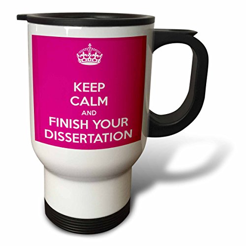 3dRose tm_193307_1 Keep Calm and Finish Your Dissertation Pink Stainless Steel Travel Mug, 14 oz, White