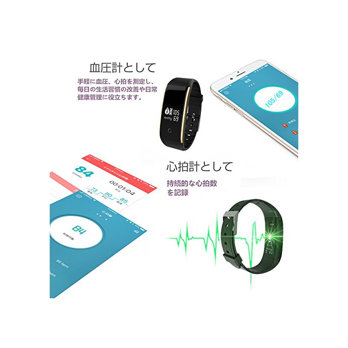 원본상품명: WEMOSI スマトブレスレット 活動量計 心拍計 血 計 腕時計 多機能 スマトウォッチ IP67防水 自動睡眠監視 line通知 着信電話通知 SMS通知 カロリ 長座注意 Bluet