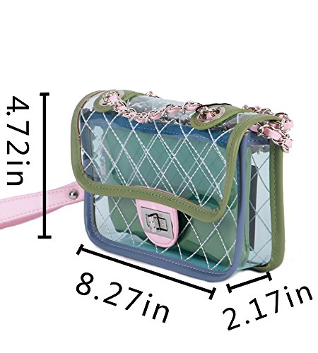 -. Feature : 1.Materials: Made from transparent Waterproof PVC + PU + Polyester, Strong and durable. Dimensions: 8.27 x 4.72 x 2.17 inches (21 x 12 x 5.5 cm). / 2.This compact design transparent bag is great for daily use, you can take it for party or shopping. / 3.Show this clear bag at Stadium, Concerts,Party,Some Work, and all the places where only clear-bags are allowed. / 4.Great for holding mobile phone, cosmetic, wallet and other necessary stuffs. / 5.This transparent purse has rectangular hard body and large inside space which easily carry your sunglasses, lipstick and more, the internal pocket fit for large smart phone like iPhone 7 Plus.