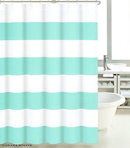 Max Studio Cotton Shower Curtain Wide Stripes Fabric Shower Curtain Turquoise Navy Blue Beige (Aqua)