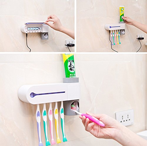 SEAGO Toothpaste Squeezer and Holder Set Toothpaste Dispenser UV Ultraviolet Family Toothbrush Sanitizer Cleaner Holder Sterilizer, 5 Brush Holder