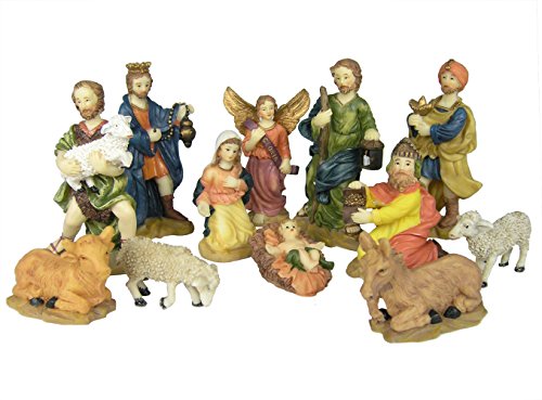 Nativity Figurine Set - Pack of 12 Hand Painted Polystone Figurines - Up To 4-Inch Tall - Manger Scene Accessories – Stable Animals