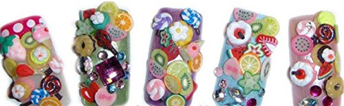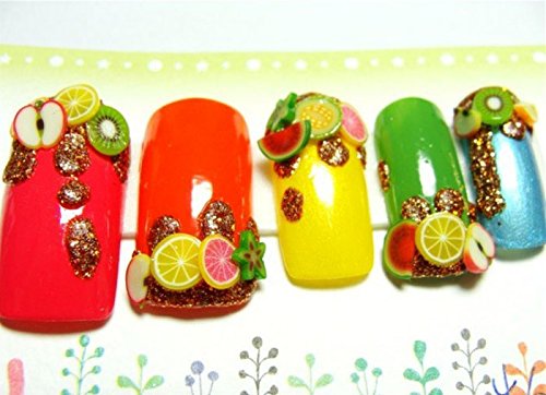 - Feature : Material:Polymer Clay / Case size:60x60x8mm / You can cut the canes slice into desirable thickness to suit your nail art design / Great for nail art decoration with nail polish,UV builder gel,acrylic nails,etc / Package Content: 120PC Wheel Mixed Fimo Clay Fruit Slice Canes Stick For 3D Nail Arts Decoration