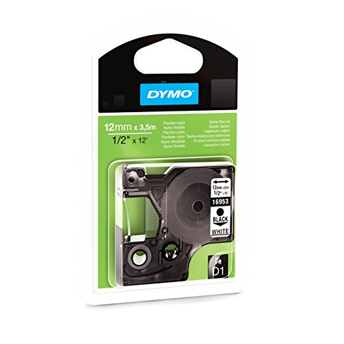 DYMO D1 High Performance Flexible Nylon Fabric Tape for Label Makers, 1/2-inch, Black Print on White, 12-foot Cartridge (16953)