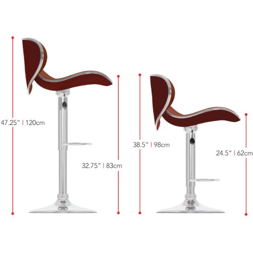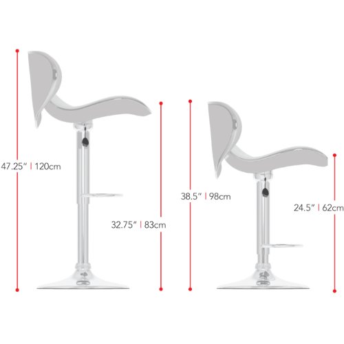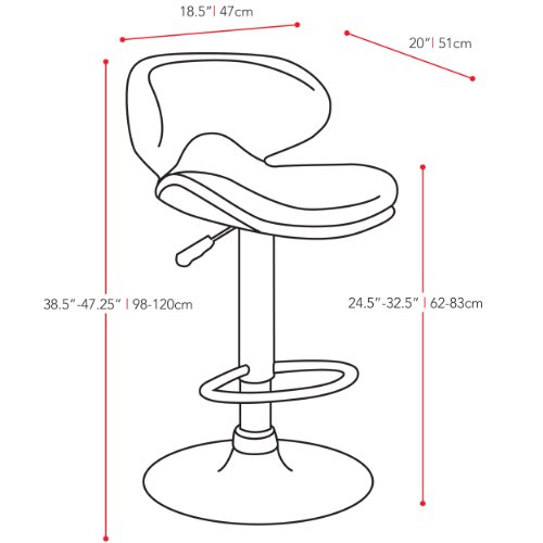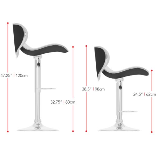 -. Brand : Sonax -. Color : Black Leatherette -. Feature : Black soft leatherette upholstery;Gas lift adjusts to variable bar heights with ease;Form fitting swan style curved design for added comfort and support; Contemporary chrome base and lift;Sold as a set of 2 chairs / Seat Height 24.5-32.75 / Style Contemporary / Material Metal and Plastic / Frame Metal -. Label : Sonax -. Manufacturer : Sonax -. MPN : B-502-VPD -. NumberOfItems : 1 -. PartNumber : B-502-VPD -. ProductGroup : Furniture -. ProductTypeName : HOME_FURNITURE_AND_DECOR -. Publisher : Sonax -. Studio : Sonax -. Title : CorLiving Curved Form Fitting Adjustable Bar Stool, set of 2