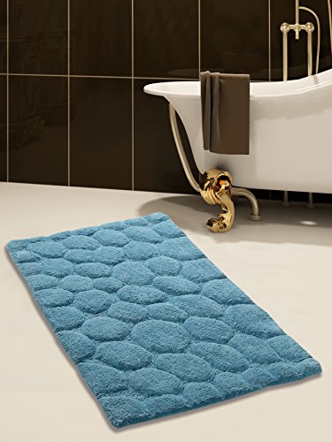 Saffron Fabs Bath Rug 100% Soft Cotton, Size 36x24 Inch, Latex Spray Non-Skid Backing, Arctic Blue Color, Pebbles Pattern, Hand Tufted, Heavy 190 GSF Weight, Machine Washable, Rectangular Shape