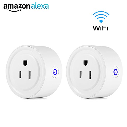 WiFi Smart Outlet Socket with Amazon Alexa,2-Pack Remote Control From Anywhere,Button switch On/Off Smart Phone&Timer Setting for iOS Android Smartphones