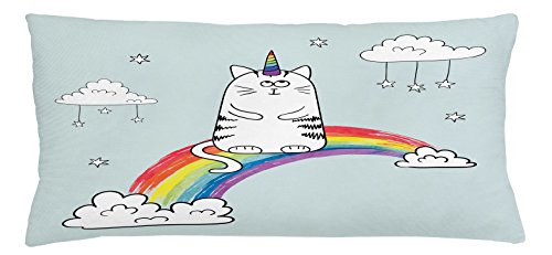 (Ambesonne)/Bedding Bath/Bedding/DIRECT FROM USA/Unicorn Cat Throw Pillow Cushion Cover by Ambesonne, Lovely Figure on Sketchy Rainbow Follow Yo...