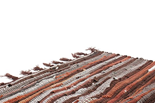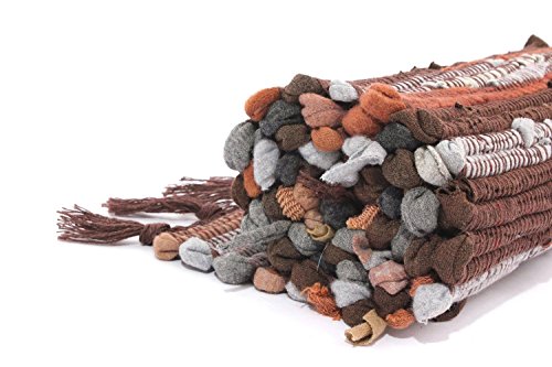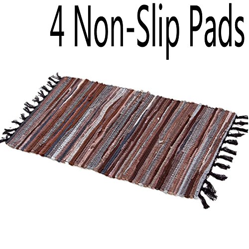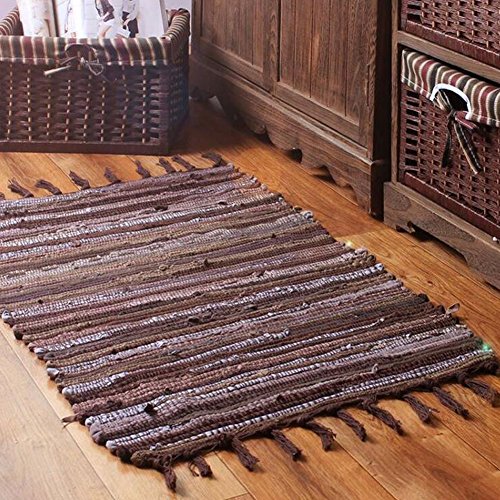 HomDSim 20x30 inches Handmade Cotton Area Bath Rag Rugs Heavy Woven Stripe Mat Carpet with Tassels for Laundry Room Kitchen Bathroom Livingroom Hallway Bedroom Washable with Non-Slip Pad (Brown)