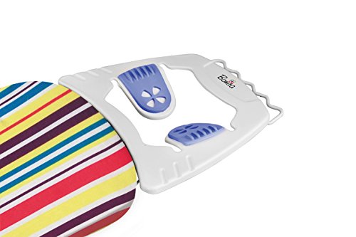 Bonita's joy + ironing board is a perfect ironing solution with a optimal ironing surface. Joy+ has a premium metal rest with inbuilt silicone pads to avoid accidents and hence providing a easy and safe experience. The ironing board's stylish sturdy leg design provides stability and durability. It can be adjusted to multiple heights as per the convenience of the user. It is light weight which makes it easier for anyone to carry the board. It has metal mesh for steam penetration and also has leg locking mechanism for easy and safe handling . Joy + also has hooks to support hangers . Its ironing surface is 44(l) x 14(w) inches/112(l)x35(w) cms. The epoxy coating on the metal framework gives it longer life and when it comes to storage, the ironing board can be folded flat easily and stored as per convenience.