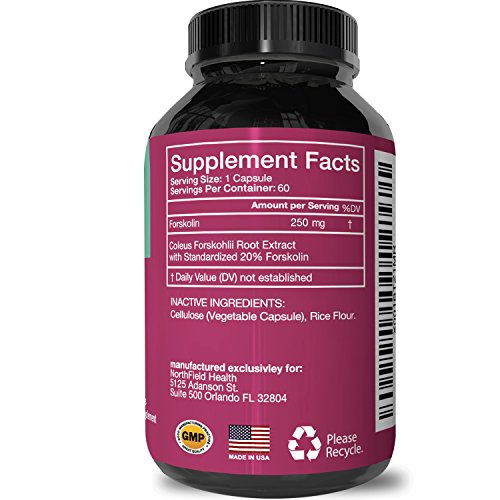 "From deep within the earth, the root of Coleus Forskohlii delivers unrivaled antioxidant and superfood power to rev your metabolism, torch calories, burn fat and whittle your waistline-all naturally! Our capsules are filled with standardized 20% pure Forskolin powder and we use only the highest quality, most natural, vegetarian/vegan ingredients. An easy way to add organic power and earthy antioxidants to your diet and healthy lifestyle, these pills are easy to absorb and readily bioavailable. Our formula is a potent multi-tasker that highlights the best of the Coleus Forskohlii root. Used traditionally in Ayurvedic medicine for its numerous properties, Forskolin has been utilized for thousands of years and noted for many benefits such as: Fat Burn Raising Metabolism Suppressing Appetite Respiratory health Eye Health Heart Strength & Vitality Vessel Health Lower Blood Pressure And More! We guarantee your 100% satisfaction, so you never need to worry about ordering a bottle or two of our natural supplements. Please let us know how Forskolin enhances your metabolism, life and weight loss goals! This is one belly blaster that doesn't require hours in the gym! "Feature