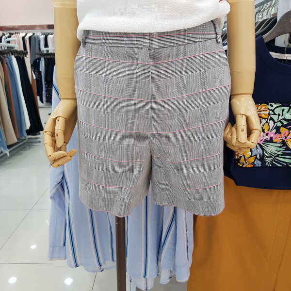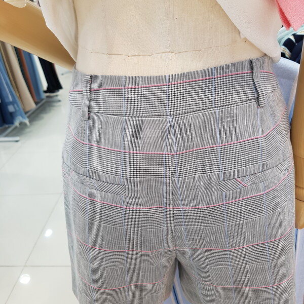 기본 그레이바탕에 산뜻한 핑크 블루 체크반바지로 자켓과 함께코디하셔도 정장느낌이 나며 단품 티셔츠 블라우스모든 제품과 어울리는 만능 아이템