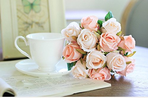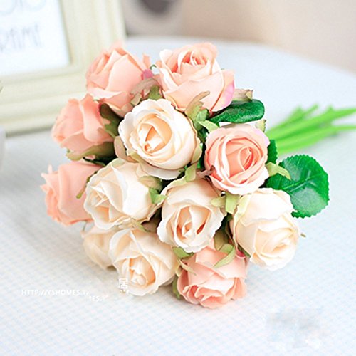 Hand Tied Bouquet Miracliy 1 Bunch 12-Pack Fake Floral Rose Silk Flower Artificial Flower Home Hotel Office Wedding Party Garden Craft Art Decor 10 Inch High