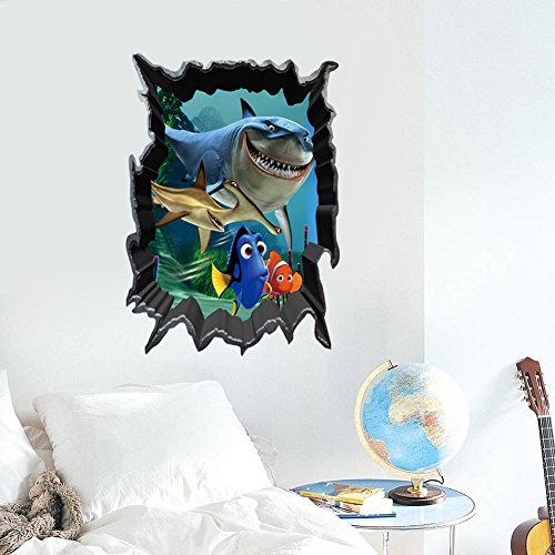 Home Decor Wall Stickers 3D Shark Vivid Marine Animals Wall Decals for Kids Boys Girls,19.6 X 27.5 Inch