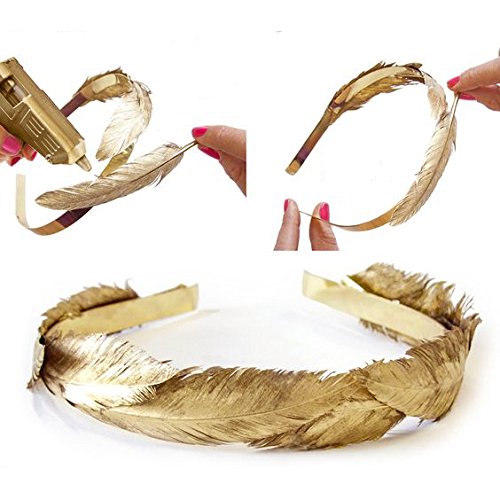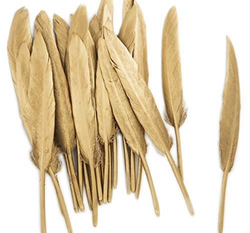 - Set of 50 pcs gold dipped goose feathers. All feathers are lost naturally ,no plucking needed and no gooses were harmed.