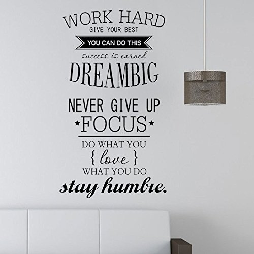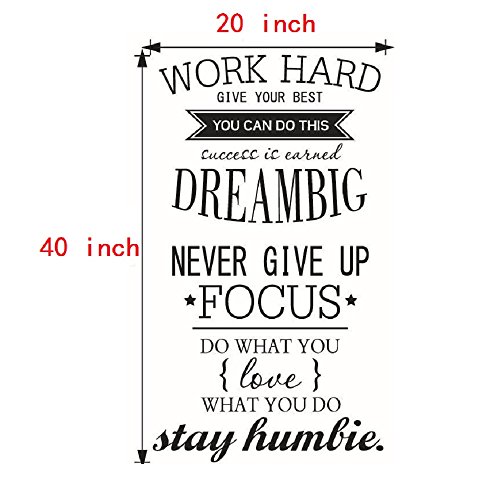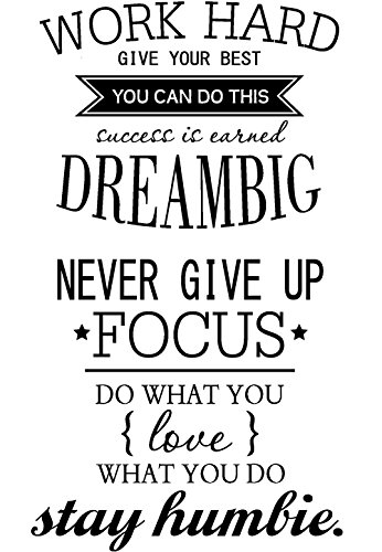 Amaonm Removable Vinyl Quotes "Work Hard, Never Give up" Wall Décor Stickers Lettering Saying Inspirational art Decor Murals for Home Walls Offices Nursery Room Kids Bedroom Classroom (Black)
