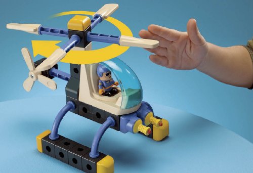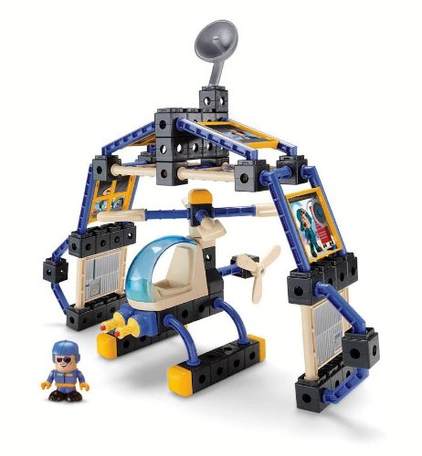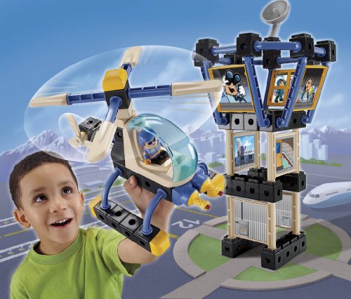 -. Feature : Easy-click bricks, sticks, and panels let kids build and rebuild a busy airport tower. / Double-sided snap-in picture panels let kids change their city adventures. / Figure snaps on to the bricks and can pilot the helicopter that kids build themselves. / 91 piece set includes a spinning airport tower, satellite dish, and helicopter roto. / Build up to 4 city adventures!
