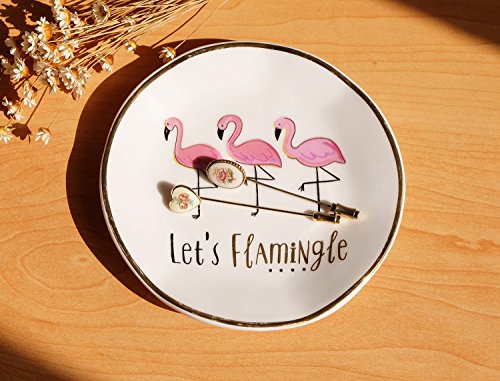 Trinket Dish,Let's Flamingle Small Jewelry Tray Decorative Plates