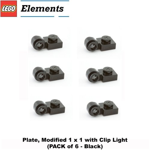 -. Title : L.E.G.O Parts: Plate, Modified 1 x 1 with Clip Light (PACK of 6 - Black)
