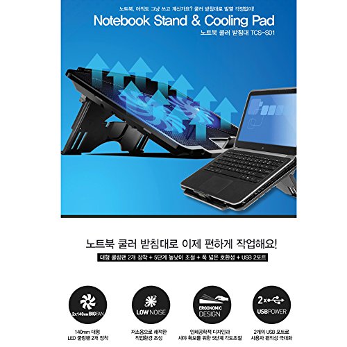 -. Binding : Electronics -. Brand : ADRET -. Color : Black -. Department : mens -. EAN : 0719412019950 -. Feature : Application:9"-17" laptop / Two distributed quiet big fans make sure the laptop cooling with LED lights. 140mm 2 big cooling fan / Ergonomic Adjustable 5 levels Stand(adjustable height settings) / Metal Mesh, Low noise 25dBA, Slim 23mm / Two USB Ports, Skid-proof pad -. Label : ADRET -. Manufacturer : ADRET -. Model : TCS-S01 -. PackageQuantity : 1 -. ProductGroup : PC Accessory -. ProductTypeName : COMPUTER_ADD_ON -. Publisher : ADRET -. Studio : ADRET -. Title : ADRET Laptop Cooling Pad, 9"-17" Slim Laptop Cooler with 2 Big Quiet Fans USB Powered Adjustable Stand with LED Lights -. UPC : 719412019950