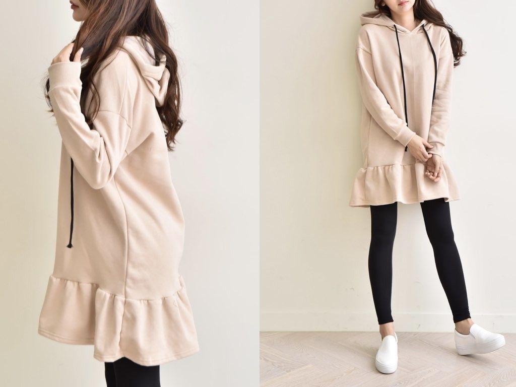 フード付きの「ふわっふわ」としたワンピースです。とても丁寧なつくりとなっており、ゆったりと着ることができます。1.基本情報色:ブラック、ホワイト、ベージュ、グレーサイズ:Free素材:綿(起毛)製造国:Korea2.サイズ情報肩幅:56cm 身幅(胸断面):52cm 腕の長さ:46cm 着丈:86cm(サイズは計る方法に応じて±2〜3cmの誤差があります。ご了承お願い致します)モデル着用サイズ:F※着用モデル(163cm、体重47kg、足のサイズ245mm)3.その他の情報厚み:中間透け感:なし伸縮性:中間裏地:有り(起毛)洗濯方法:洗濯お取り寄せ商品は、納品まで約10日前後いただきます。ご了承お願い致します。