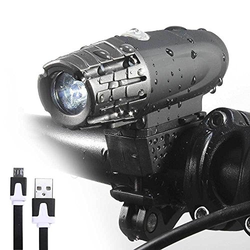 -. Title : Bicycle Front Waterproof USB Rechargeable Headlight – Super Bright 200 Lumens 3W Safety Warning Light for Off Road Bicycle Light – Durable, Water Resistant Construction & 360 Swivel Design