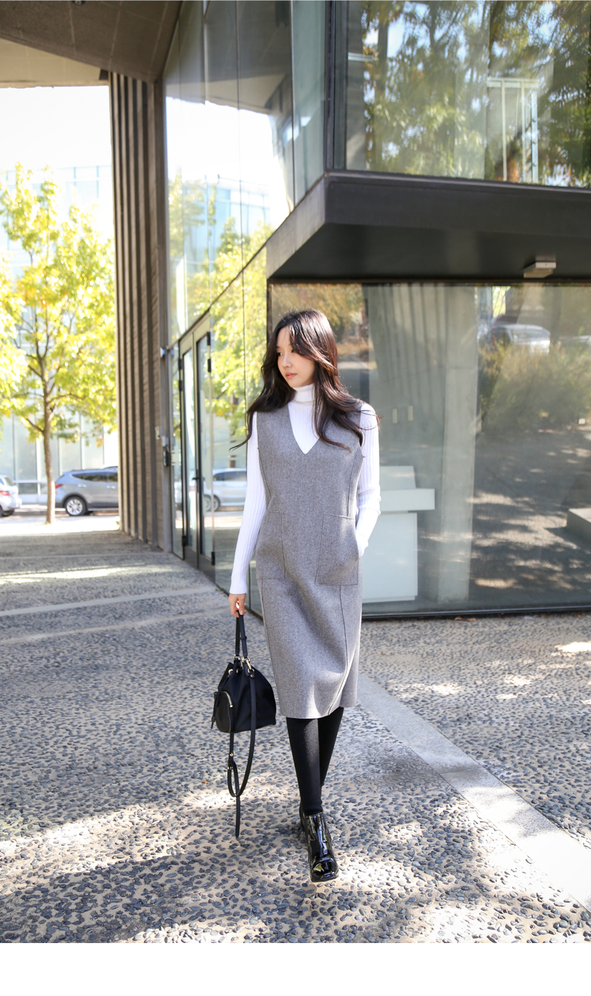 데끼 브이 포켓 컷팅 울원피스