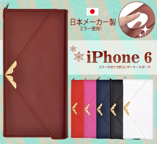 iPhone6用♪ミラー付き三つ折りレザーケースポーチ