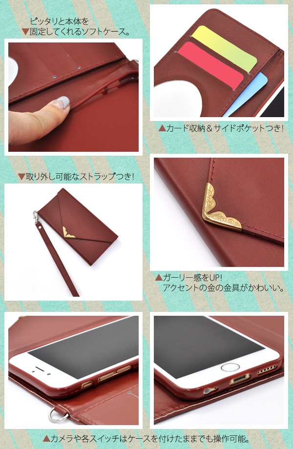 iPhone6用の落ち着いたレザーのガーリーなケースポーチ。
