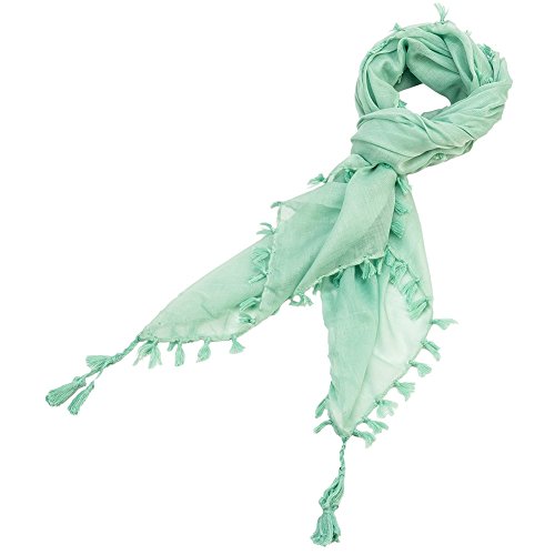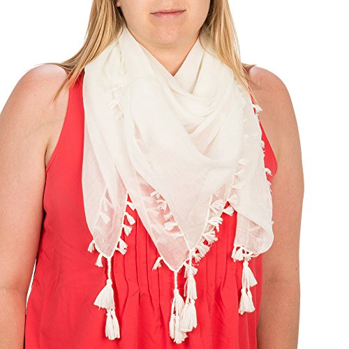 Product Description Cozy enough to wear with a cardigan but so soft and lightweight to wear during the summer. The Solid Color Scarf with Tassels measures 39 x 39 and comes in 6 different colors to coordinate with any outfit. No matter how you wear or tie it, you will look stylish! 0