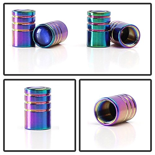 iJDMTOY (4) Tuner Racing Style Neo Chrome Aluminum Tire Valve Caps (Cylinder Shape)
