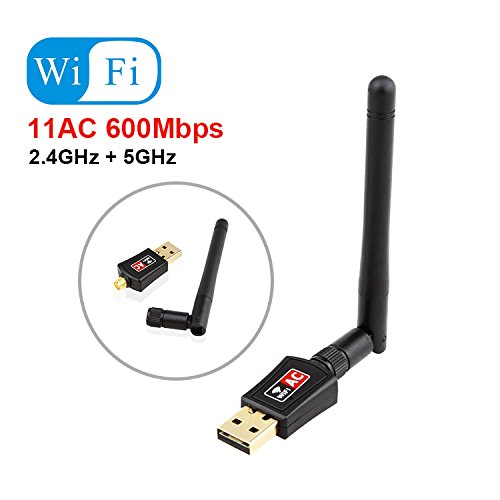 -. Feature : Powerful external high gain long-range 2dBi antenna wireless usb wifi adapter help you connect even when signals are weak. / High speed 802.11ac wireless adapter, up to 600Mbps wifi speeds on 5GHz (433Mbps) or 2.4GHz (150Mbps) bands. / Easy to use: once you've installed the CD and run the software, you can simply insert the adapter to get connected. / USB wireless network adapter supports operation system: Windows 7/ 8/ 10/ XP/ Vista (32-bit/64-bit),Mac OS 10.4-10.12. / What You Get: 600Mbps Mini 802.11ac Dual Band 2.4G/5G Wireless Adapter, CD drive, User Manual, our worry-free 12-month warranty and friendly customer service.