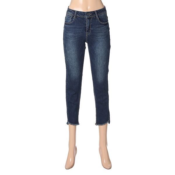사방스판의 신축성이 뛰어난 원단으로 밑단에 사선으로 올이 풀리도록 포인트를 준 트랜디한 데님입니다.