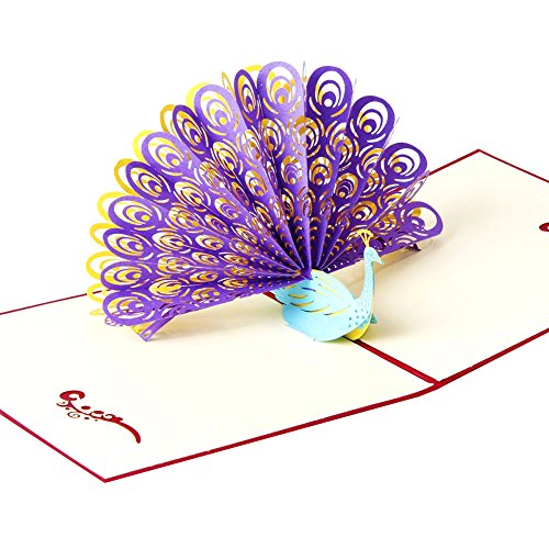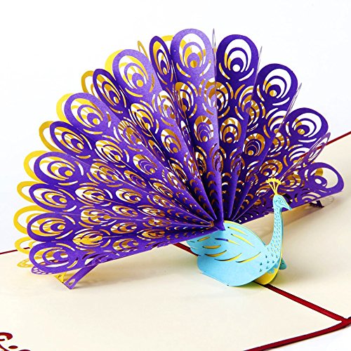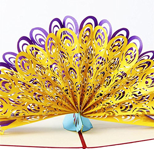 Ocharzy 3D Pop Up Greeting Card Handmade Anniversary Birthday Party Gift (Peacock)