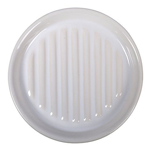 Bodico Ceramic Soap Dish with Bamboo Bottom, 4 inches, White