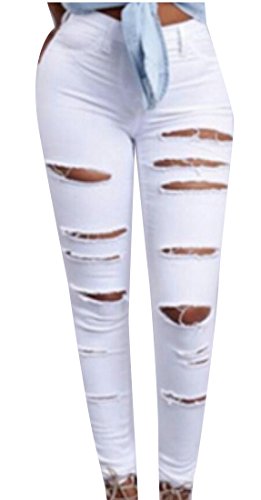 -. Title : maweisong Women's Hole Ripped Stretchy Distressed Jeans Denim Long Pants XS White