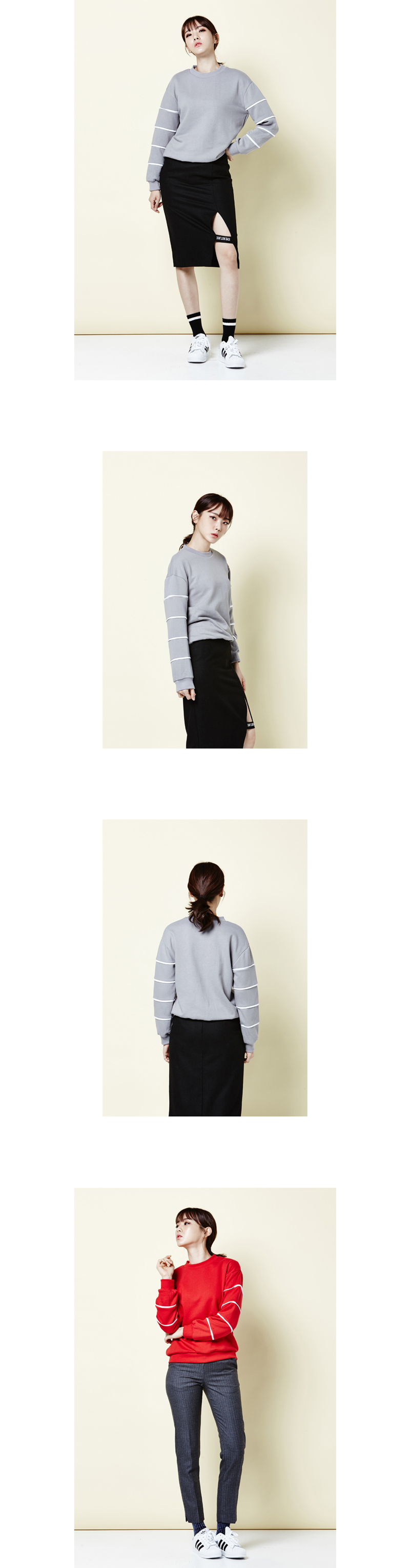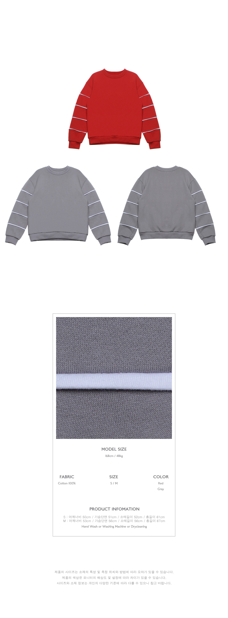 소매 부분을 하나하나 절개하여 파이핑 처리한 맨투맨입니다.