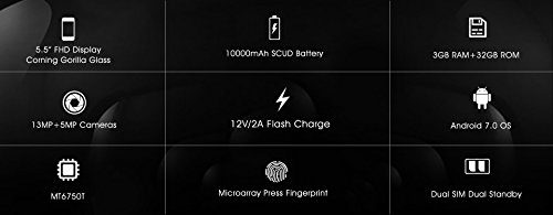 [[Neuerscheinungen]] OUKITEL K10000 PRO - Android 7.0 Smartphone mit 10000mAh Akku, MTK6750T Octa Core 1.5GHz 3GB RAM 32GB ROM, 5,5 Zoll Gorilla Glasschirm, 13MP Kamera Fingerabdru