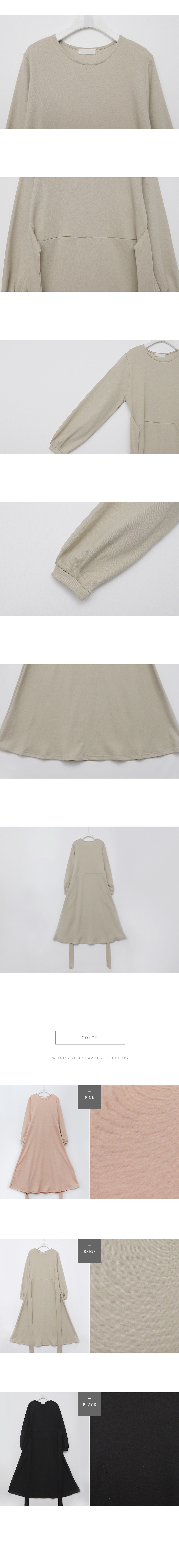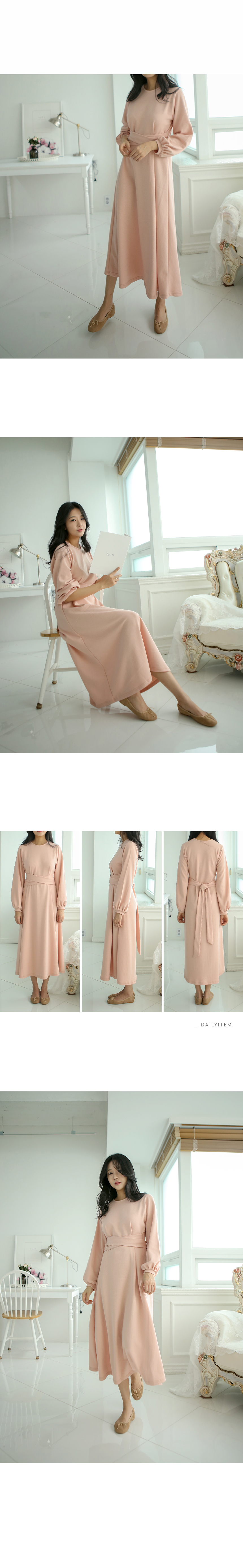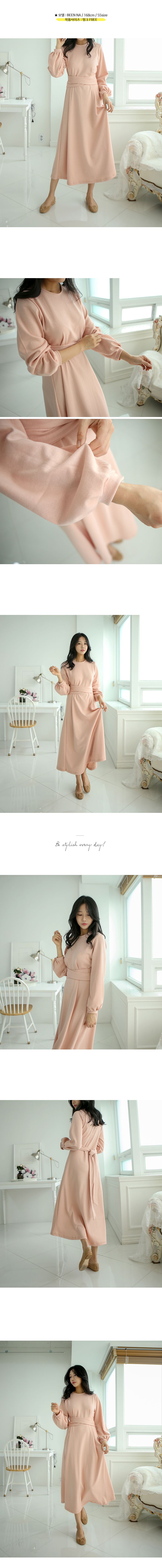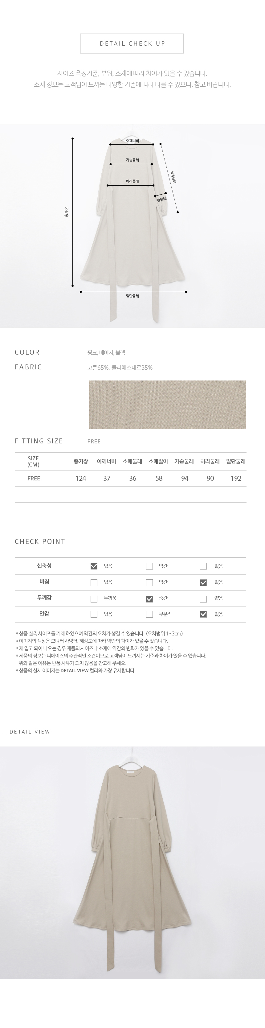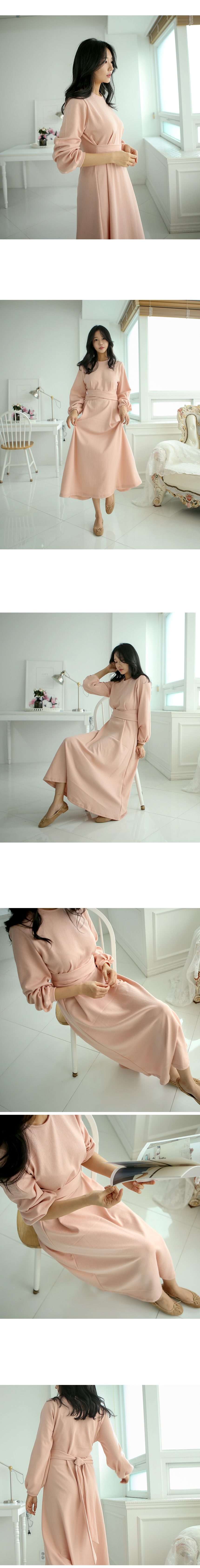 코튼혼방의 부드럽고 톡톡한 두께감이 봄시즌 단독으로 입어도 좋을정도로 포근해요 허리선 양쪽에 제가의 벨트가 연결되어 앞으로 크로스해서 뒤로 묶어주었어요 허리선의 밸트는 앞쪽으로만 당겨 살짝 묶어줘 길게 늘어뜨려줘도 멋스럽답니다 발목선에 가까운 롱한 길이감이 우아함을 더해주고 제어깨선에서 떨어지는 소매라인은 끝부분에 살짝 퍼프분량으로 더욱 여성스럽답니다 날리지 않고 단정하고 무게감있게 툭 떨어지는 라인이 고급스러운 원피스에요