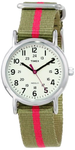 Timex Women's T2N917 "Weekender" Watch with Olive Green and Red Nylon Strap