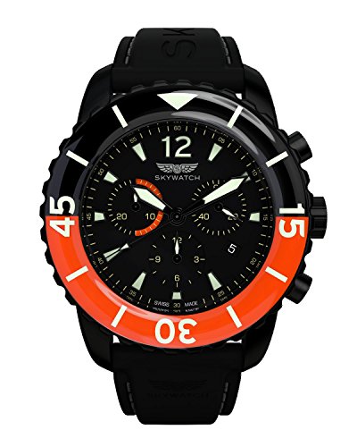 Skywatch '44mm Chronograph' Swiss Quartz Stainless Steel and Silicone Casual Watch, Color:Black (Model: CCI027-A)