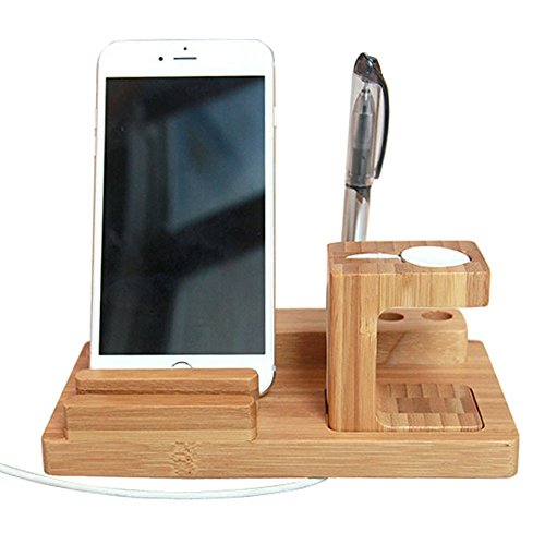 Display and charge your Apple Watch with this beautifully crafted wooden desk tidy stand . Also charge your iPhone and iPad with the additional docking positions, so you can view notifications in comfort while your phone is charging.